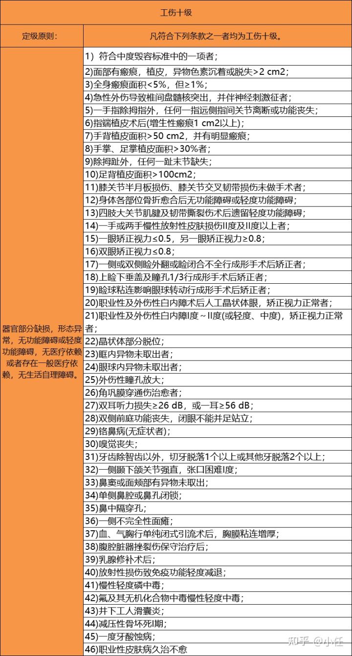 2006年,国家发布了《职工工伤与职业病致残程度鉴定标准》,该标准将残疾程度分成十个等级,最重为第一级,最轻为第十级。